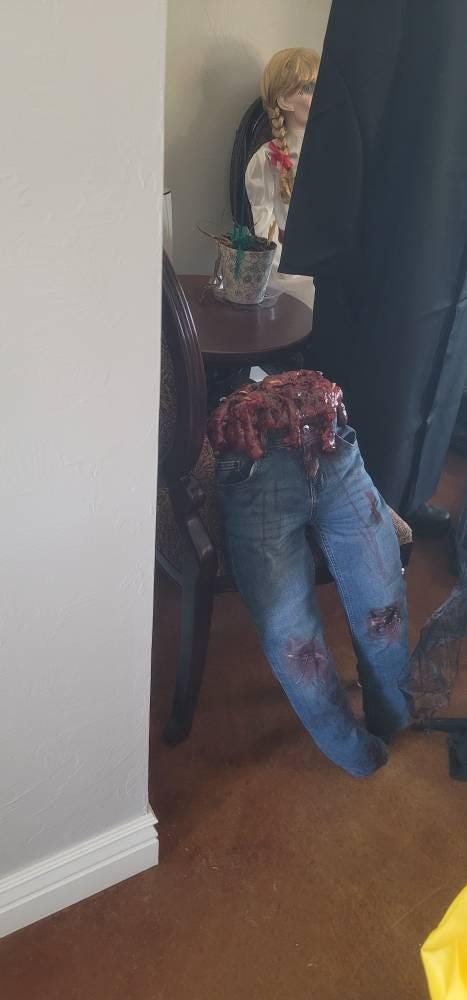 The legs you receive will be slightly different from whatβs pictured as I make them based on what stock I have available. They come in a variety of jean colors, and each paint job of the intestines is different. I try to make legs based on your intended use (ex. butcher shop or graveyard or whatever) so let me know how you plan on using them. If you need of a specific jean color/sneaker color/ or gender message me and Iβll do my best. If not itβs the luck of the draw. π»